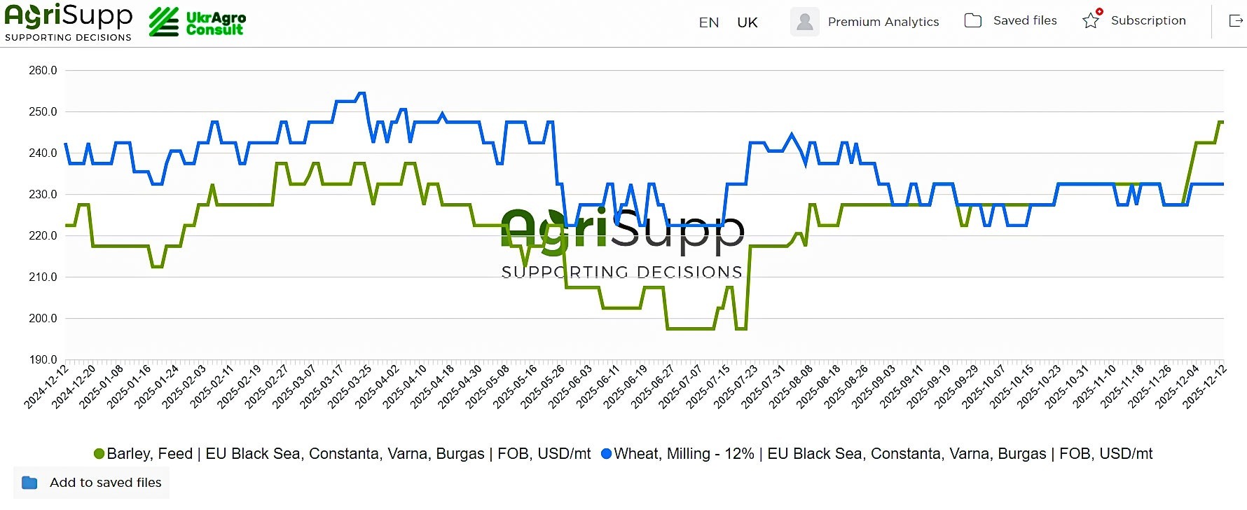 Current price reached a seasonal maximum, not seen since the spring of MY 2022/23, while the spread with the milling wheat is widening. Active domestic and export demand supports the price, particularly due to lower offers from Ukraine and lower volumes remained for sale in Romania.