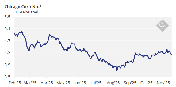 Corn fell again last week while wheat traded sideways. China continued buying US wheat and soybeans, while Russian wheat production was revised higher. The outlook remains more bearish than bullish due to abundant global supplies, with limited support from the slow Ukrainian corn harvest and China’s uncertain soybean purchases, which may not meet the 12 million tonne target by year-end.