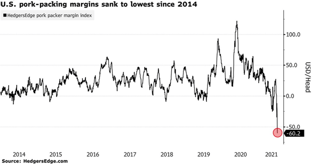A shortage of hogs in the U.S. means pork-packer margins are getting pinched.