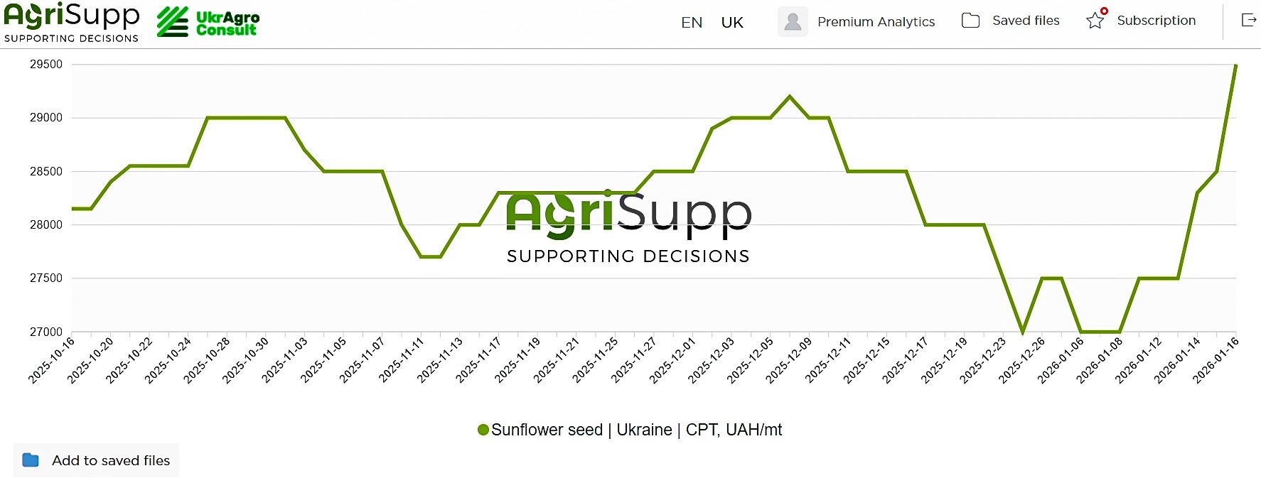 On a CPT-plant basis, prices reached the psychological threshold of 30,000 UAH/mt (USD 691.04/mt), while for SFS with an oil content of 50%+, prices climbed up to 31,000 UAH/mt (USD 714.07/mt) and above with delivery to crushing facilities in the Black Sea ports.