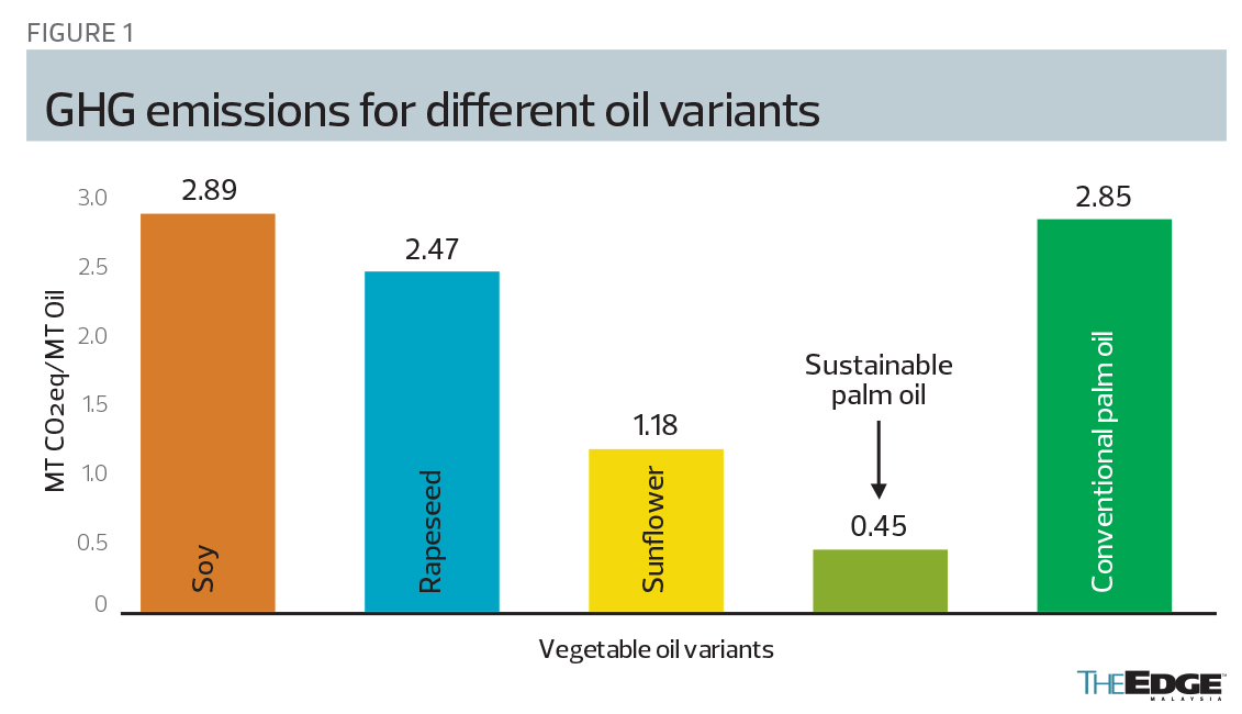 So, what action can the palm oil industry take? Fortunately, it started its sustainability journey early and has a 15-year head start. On Sept 30 in Milan, Maria Vincenza (Cinzia) Chiriacò of CMCC (Euro-Mediterranean Centre on Climate Change) presented a paper titled “The environmental impacts of palm oil and main alternative oils”. Palm oil has an average emission of 0.45 metric tonnes of carbon dioxide equivalent per tonne (MT CO2eq/MT) oil compared with 2.89 for soy, 2.47 for rapeseed and 1.18 for sunflower.