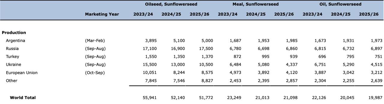 The forecast for sunflower meal production was 4.3 million tons (-0.7 million tons).
