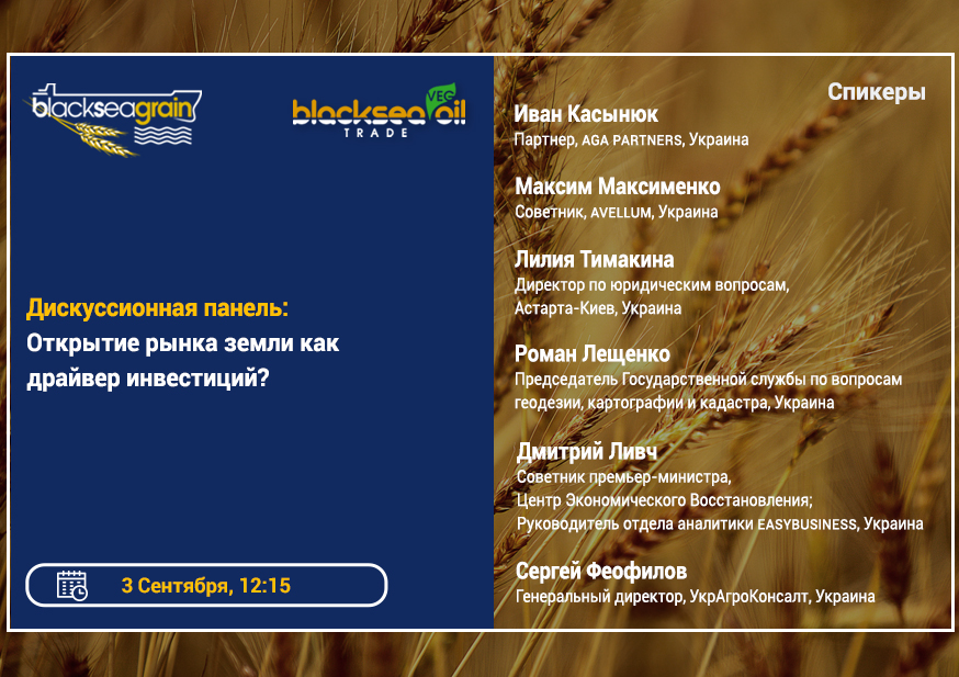 ДИСКУСІЙНА ПАНЕЛЬ: ВІДКРИТТЯ РИНКУ ЗЕМЛІ ЯК ДРАЙВЕР ІНВЕСТИЦІЙ – СПІКЕРИ СЕСІЇ