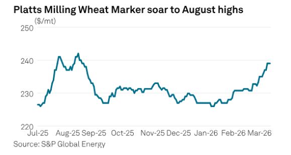 Слабка національна валюта призвела до того, що імпортні ціни на пшеницю зрівнялися з внутрішніми, хоча зазвичай місцеві ціни були нижчими. Водночас ціни CIF на постачання з росії зросли з $21 до $24 за тонну, а оцінка Milling Wheat Marker на 12 березня становила $239/т, що на 2,5% вище за рівень 27 лютого.