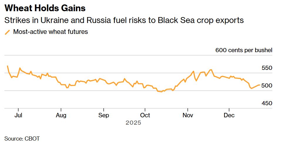 Світові ціни на пшеницю зросли через нову хвилю напруженості у Чорноморському регіоні. Після триденного ралі, під час якого ф’ючерси в Чикаго подорожчали на 1,7%, котирування стабілізувалися поблизу тижневого максимуму на тлі зростаючих ризиків для стабільного експорту зерна, про це повідомляє Bloomberg.