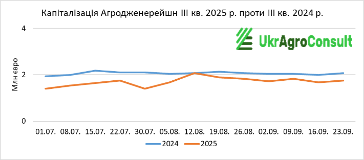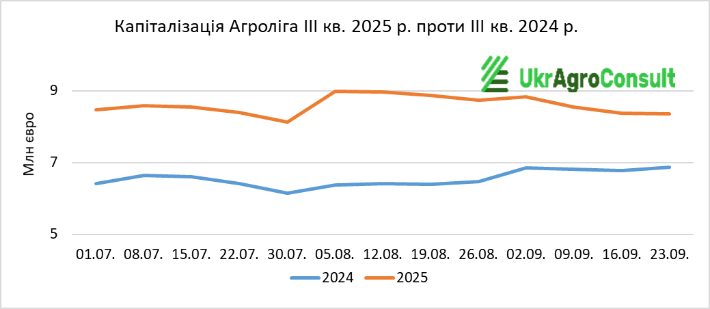 Протягом ІІІ кв. 2025 р. ситуація з капіталізацією більшості агрохолдингів порівняно з ІІI кв. 2024 р., складалася набагато краще.
