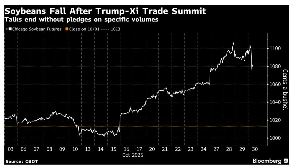 Міністерство комерції Китаю підтвердило угоду про розширення аграрної торгівлі, але не згадало сою окремо. Напередодні саміту Пекін зробив символічний жест, здійснивши перші закупівлі американської сої цього сезону. Минулого року такі поставки перевищували $12 млрд, але Китай утримувався від покупок, щоб зберегти важіль тиску в торговельних переговорах.