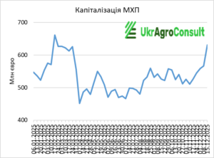 – «МХП» – з 566,28 млн євро 8 грудня до 631,33 млн євро 15 грудня (+0,1%);