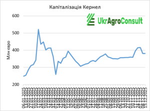 – «Кернел» – з 380,24 млн євро 8 грудня до 380,27 млн євро 15 грудня (+0,01%);