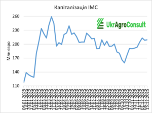 – «IMC» – з 208,60 млн євро 8 грудня до 209,14 млн євро 15 грудня (+0,2%);