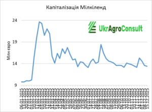 – «Мілкіленд» – з 13,59 млн євро 8 грудня до 13,40 млн євро 15 грудня (-1,4%);