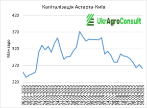 – «Астарта-Київ» – з 272,38 млн євро 22 вересня до 260,91 млн євро 29 вересня (-4,2%);