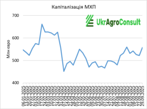 – «МХП» – з 522,08 млн євро 22 вересня до 558,16 млн євро 29 вересня (+6,4%);