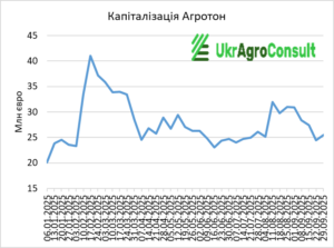 – «Агротон» – з 24,47 млн євро 22 вересня до 25,51 млн євро 29 вересня (+4,0%);