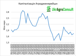 – «Агродженерейшн» – з 1,68 млн євро 22 вересня до 1,75 млн євро 29 вересня (+4,0%);