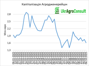 – «Агродженерейшн» – з 1,75 млн євро 29 вересня до 1,61 млн євро 6 жовтня (-8,0%);