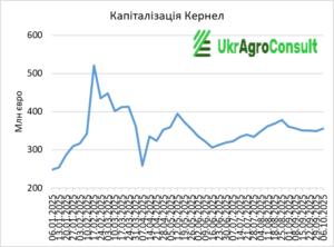 – «Кернел» – з 349,32 млн євро 29 вересня до 355,86 млн євро 6 жовтня (+1,8%);
