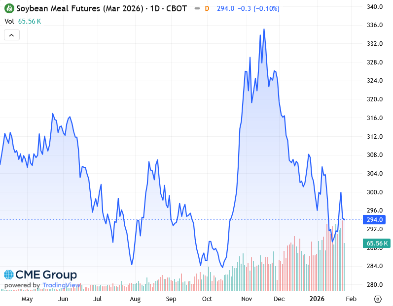 Мартовские фьючерсные фьючерсы на соевый шрот на бирже CBOT закрылись с понижением на 0,30 доллара до 294 долларов за короткую тонну после достижения двухнедельного максимума в понедельник.