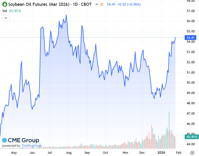 Мартовские фьючерсы на соевое масло на CBOT подорожали на 0,52 цента и закрылись на отметке 54,41 цента за фунт. По словам аналитика, рост цен на соевое масло поддержал фьючерсы на сою.