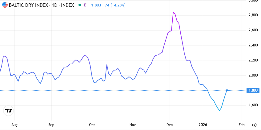 Средняя суточная прибыль для судов типа Capesize, которые обычно перевозят грузы весом 150 000 тонн, такие как железная руда и уголь, снизилась на 1303 доллара до 19 976 долларов.