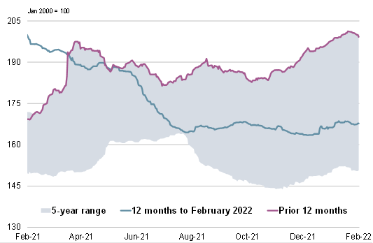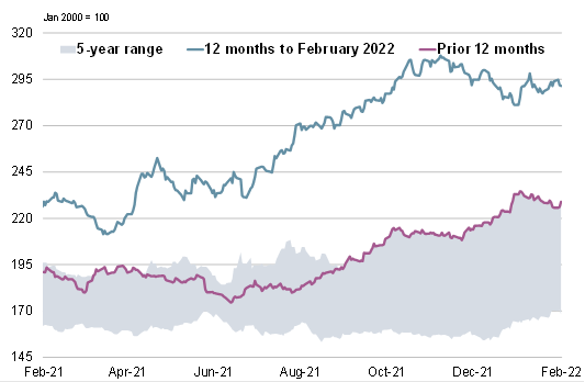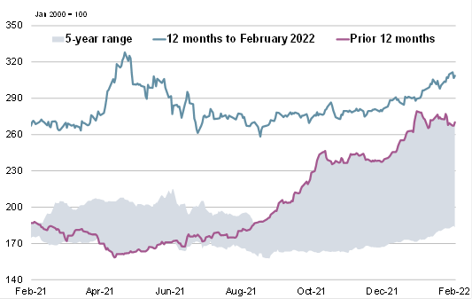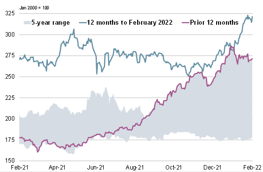 Благодаря росту на всех рынках, в первую очередь на соевых бобах и кукурузе, показатель IGC GOI увеличился на 7% по сравнению с предыдущим периодом, достигнув более чем девятилетнего максимума в начале февраля.