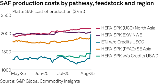 Ожидается, что конкуренция между биотопливом для автомобильного транспорта и авиационным SAF за одно и то же высококачественное сырье в течение десятилетия усилит ценовое давление.