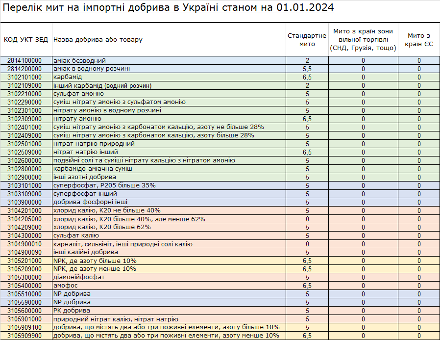 По данным УкрАгроКонсалт, крупнейшими поставщиками карбамида являются Азербайджан и Туркменистан, в то время как аммиачной селитры — Польша и Болгария. Для этих стран уже и так действует нулевая пошлина на импорт удобрений.
