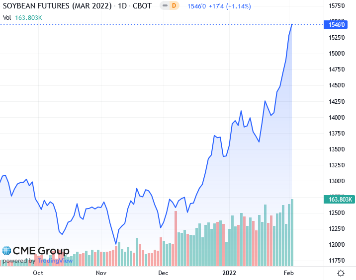 Datagro оценила урожай сои в Бразилии в 130 млн тонн по сравнению с 142,05 млн тонн в декабрьском прогнозе и 144,06 млн тонн, первоначально прогнозируемых на 2021/22 год, сославшись на погодные проблемы, вызванные погодными условиями Ла-Нинья.