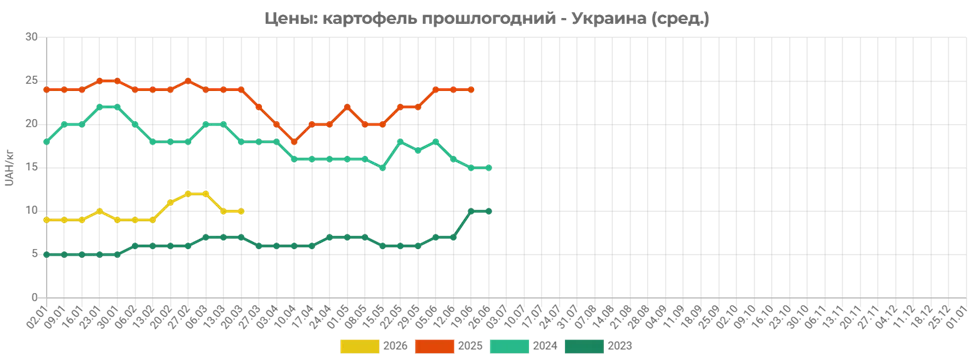 Стоит отметить, что на сегодняшний день картофель в Украине уже поступает в продажу в среднем на 62% дешевле, чем в конце марта 2025 года.
